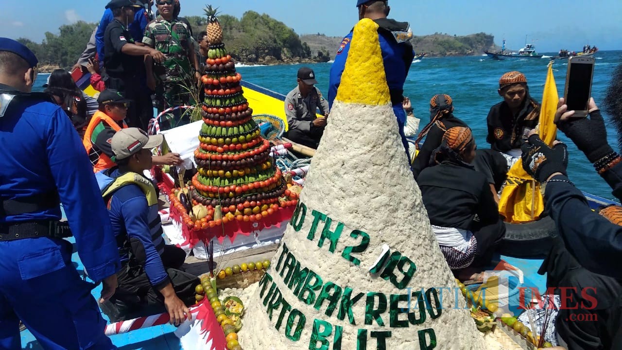 Prosesi ini selalu dinantikan ribuan pengunjung dari berbagai daerah-daerah. Dalam ritual budaya ini masyarakat Desa Tambakrejo menggelar kirab tumpeng dan sesaji pada Senin (2/9/2019). Kemudian, tumpeng dan sesaji diarak dari Kantor Desa Tambakrejo menuju pesisir pantai untuk didoakan.