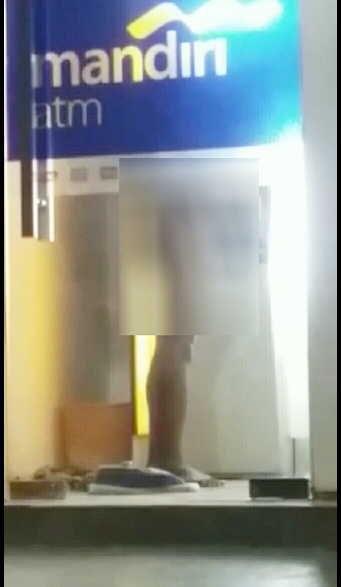 "Ngeloco (sebutan onani dalam bahasa jawa) bung, ngeloco di Bank Mandiri ATM. Orang apa ini," ujar seorang pria yang diduga merekam video ini.